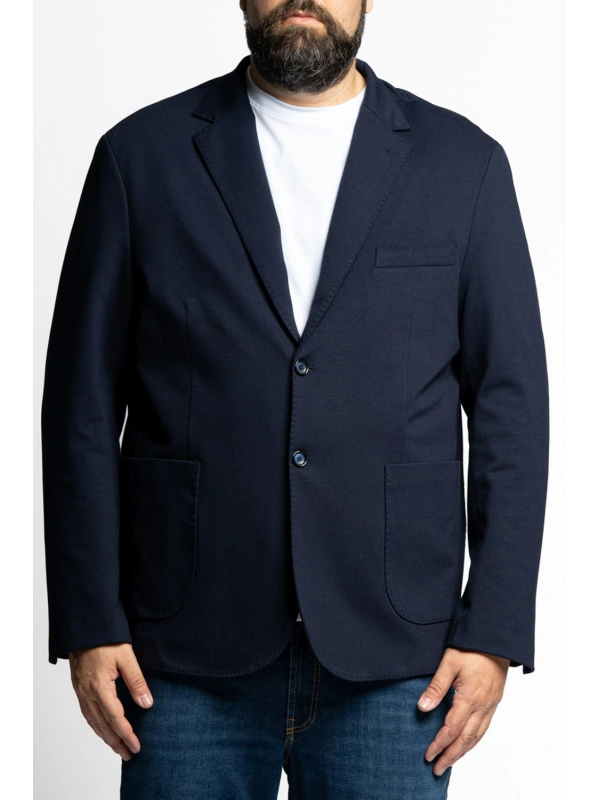 Topla rastezljiva prolazna jakna za jače figure s dva bočna i dva unutarnja džepa.